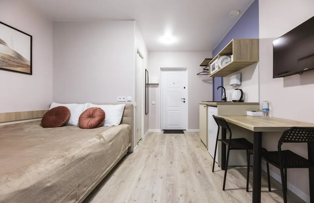 На оснащённой всем необходимым кухне можно приготовить собственные блюда. Для комфортного приёма пищи также предусмотрели обеденный стол. Ресторан Olivka с большим выбором блюд и напитков находится примерно в 1 км. Ближайший аэропорт — Киев им. И. И. Сикорского, расположен в 20 км.